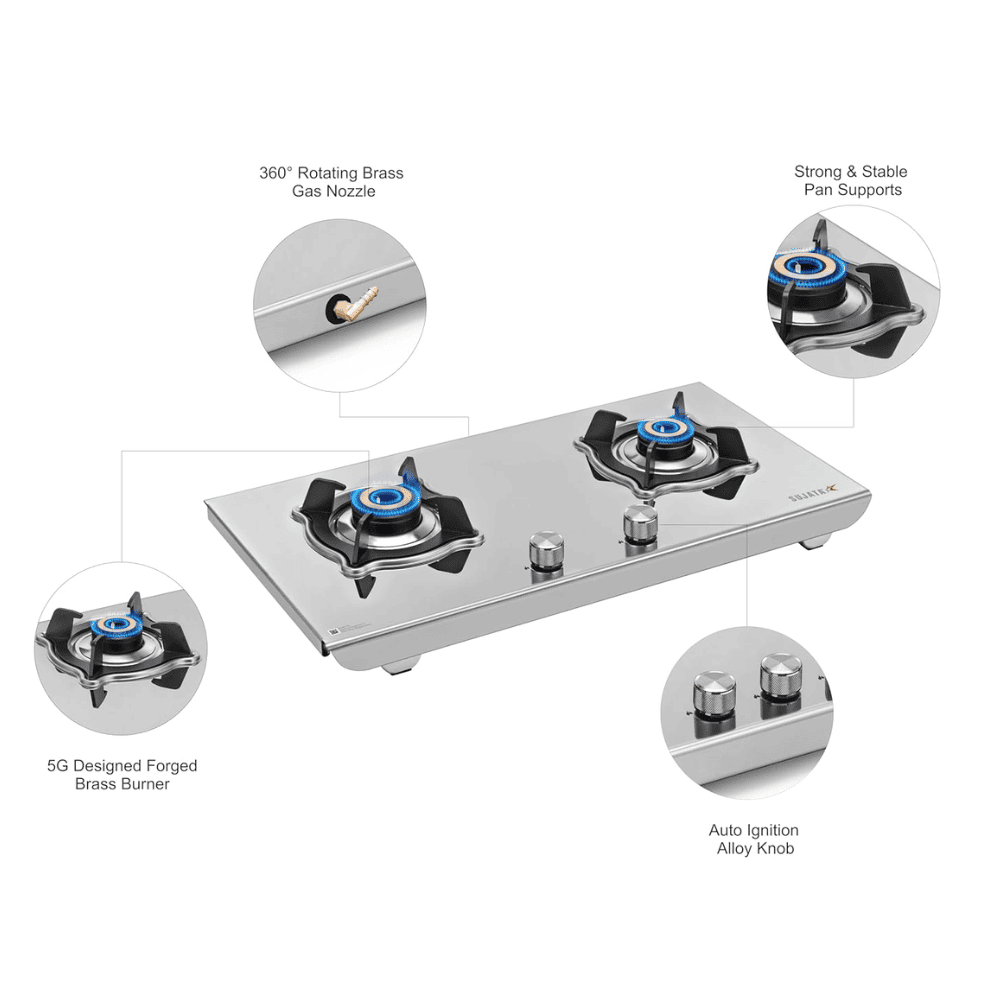 1 Steel Top Gas Stove 1 Mini Pan Support 1 Baati / Tandoor Stand 1 Burner Cleaning Pin 1 Operating Manual Cum Warranty Card