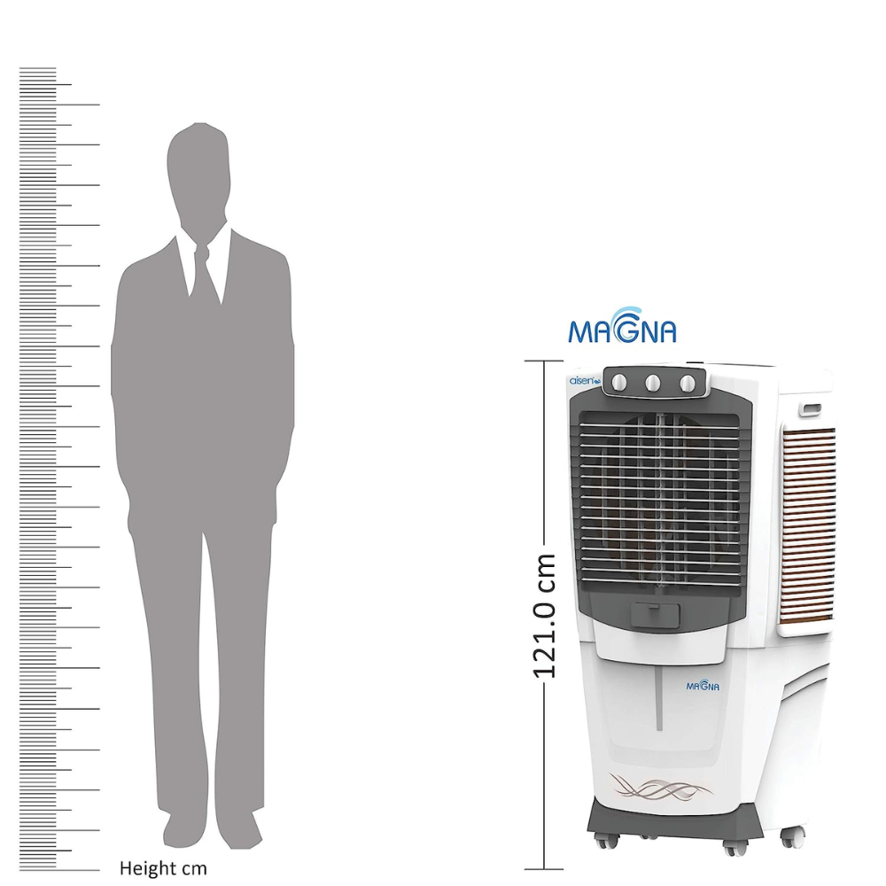 - Equipped with a large water storage tank capacity of up to 90 L, the Aisen 90 L Desert Air Cooler can function smoothly without requiring frequent refills.