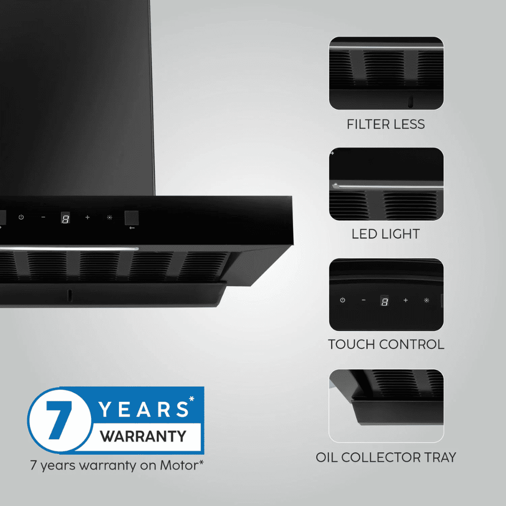 Glen 6052 DI BL ACL, 60 cm 1200 m3/hr Auto Clean Filter less Kitchen Chimney (Black)