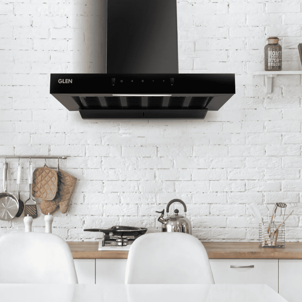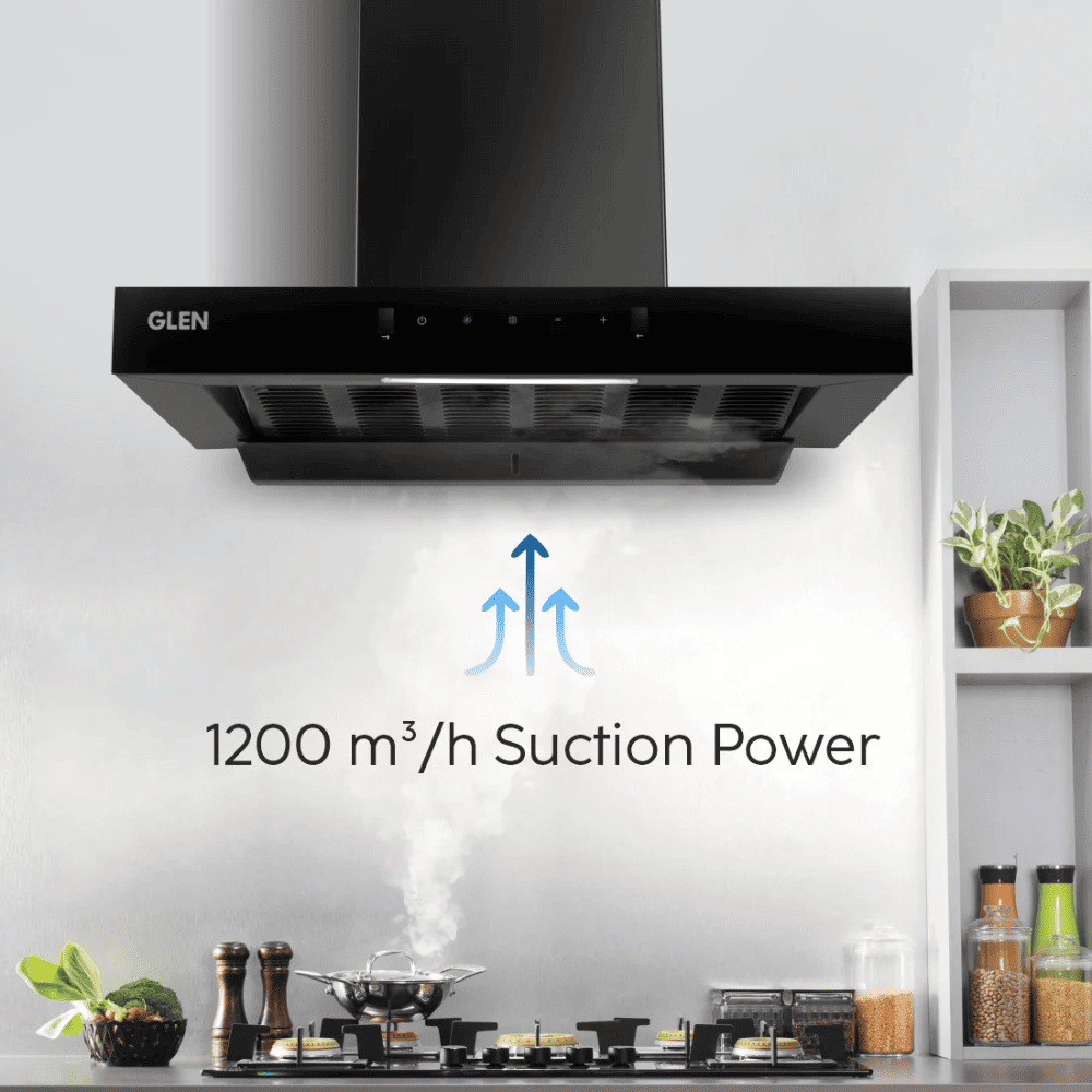 Glen 6052 SLIM BL, 60 cm 1200 m3/hr Auto Clean Curved Glass Kitchen Chimney (Black)