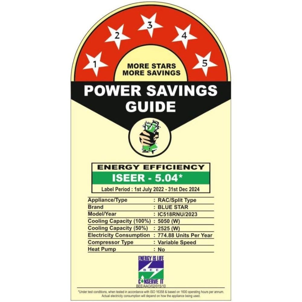 Blue Star 1.5 ton 5 star Inverter Split Air Conditioner (IC518RNU)