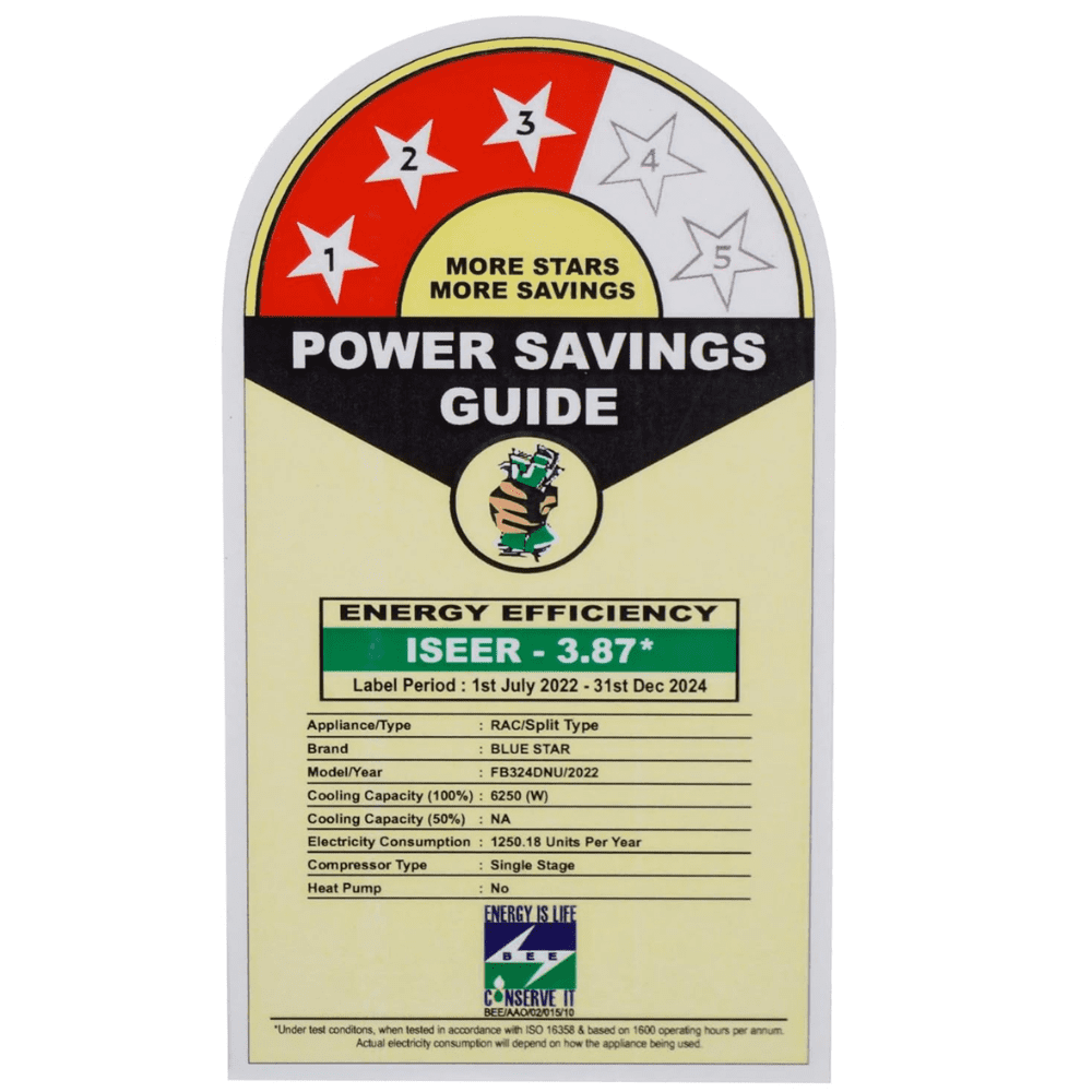 - Energy Rating: 3 Star. Annual Energy Consumption: 1250.18 units. ISEER Value: 3.87