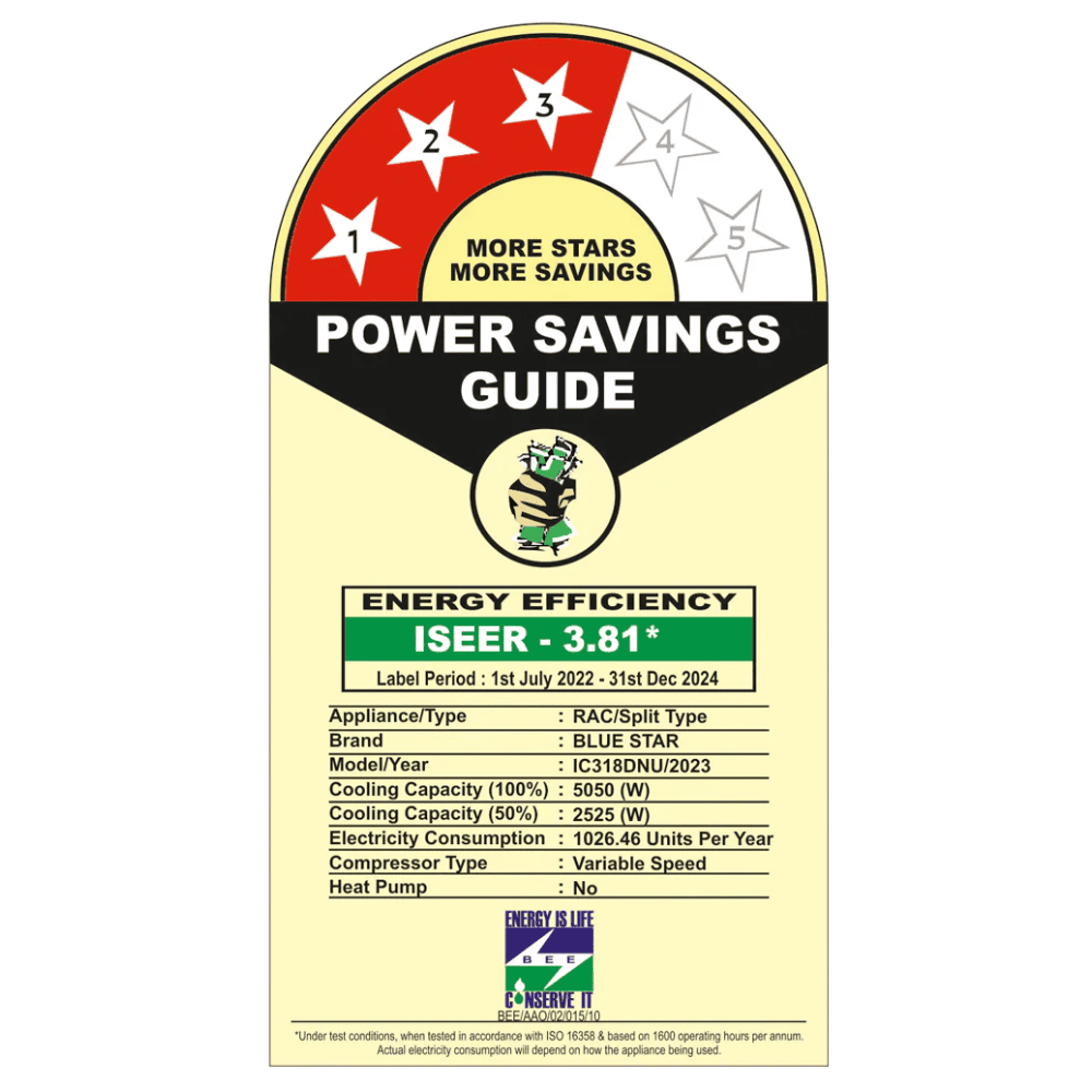 Blue Star 1.5 ton 3 Star Inverter split Air Conditioner (IC318DNU)