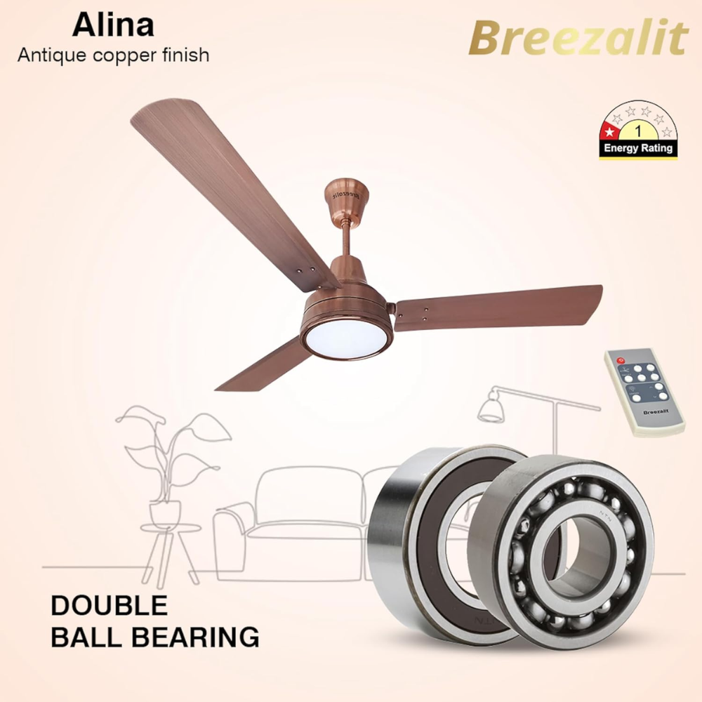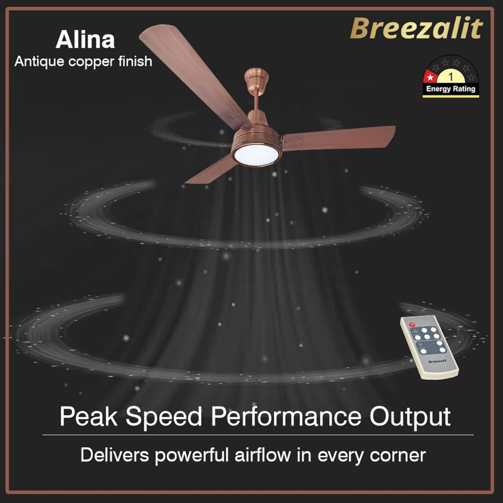 - Breezalit Alina Ceiling Fan is ultimate expression of luxury with a timeless antique finish and premium aesthetics.
