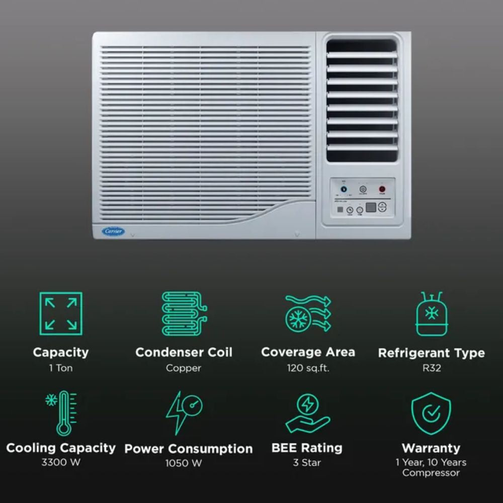 Carrier 1 ton 3 Star Fixed Speed Window Air Conditioner (12K 3s ESTRELLA FX WRAC)