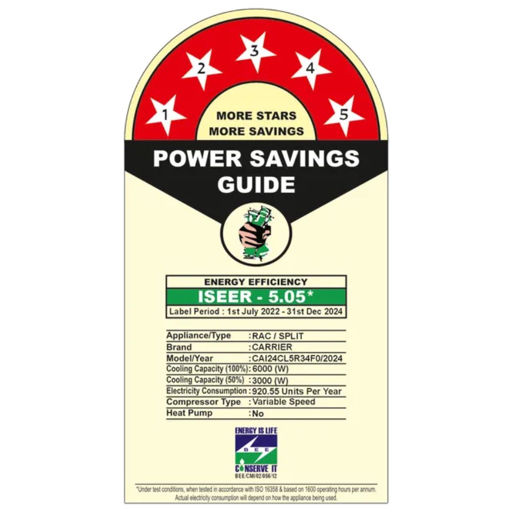 Carrier 2.0 Ton 5 Star Inverter Split Air Conditioner (24K 5S XCEL LUMO FXI)