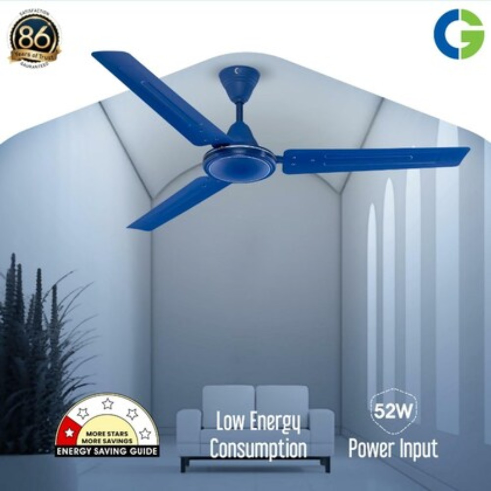 - Less Energy consumption-BEE 1 star rated fan with less energy consumption, power input 52W.