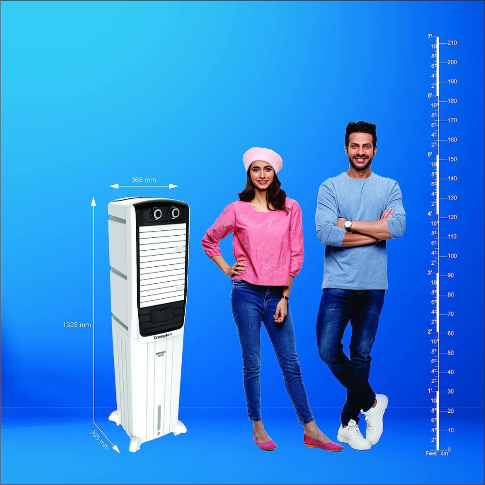 - Product: Crompton Optimus Neo 52 Tower Air Coolerwith water tank capacity (upto brim) of 52 L; Suitable for 160 sq. ft. room size