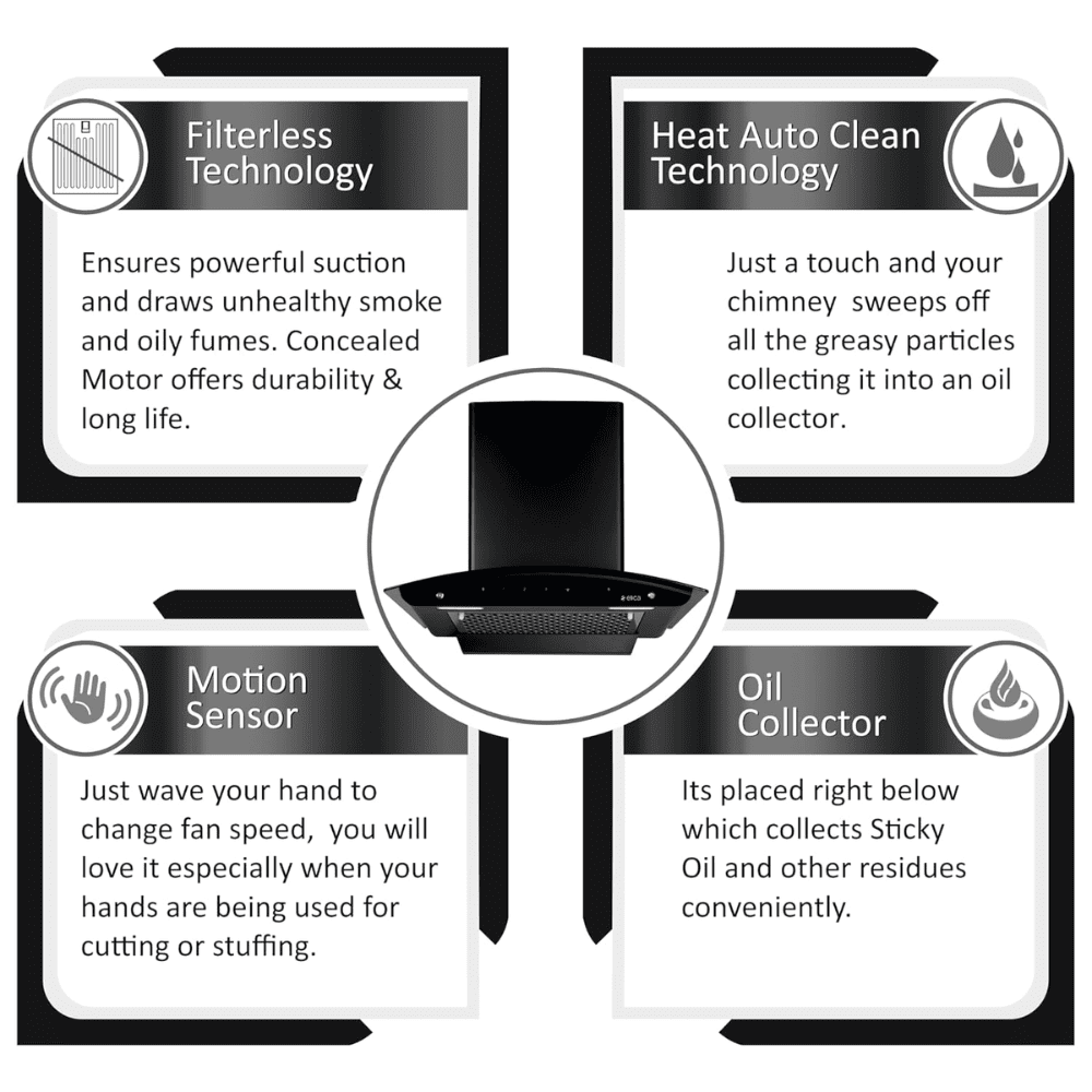 Advanced Auto Clean Tech Features : Heat Auto Clean technology, which uses a heating element to break up stubborn oil particles. These particles are then collected in the built-in oil collection, making maintenance easier.