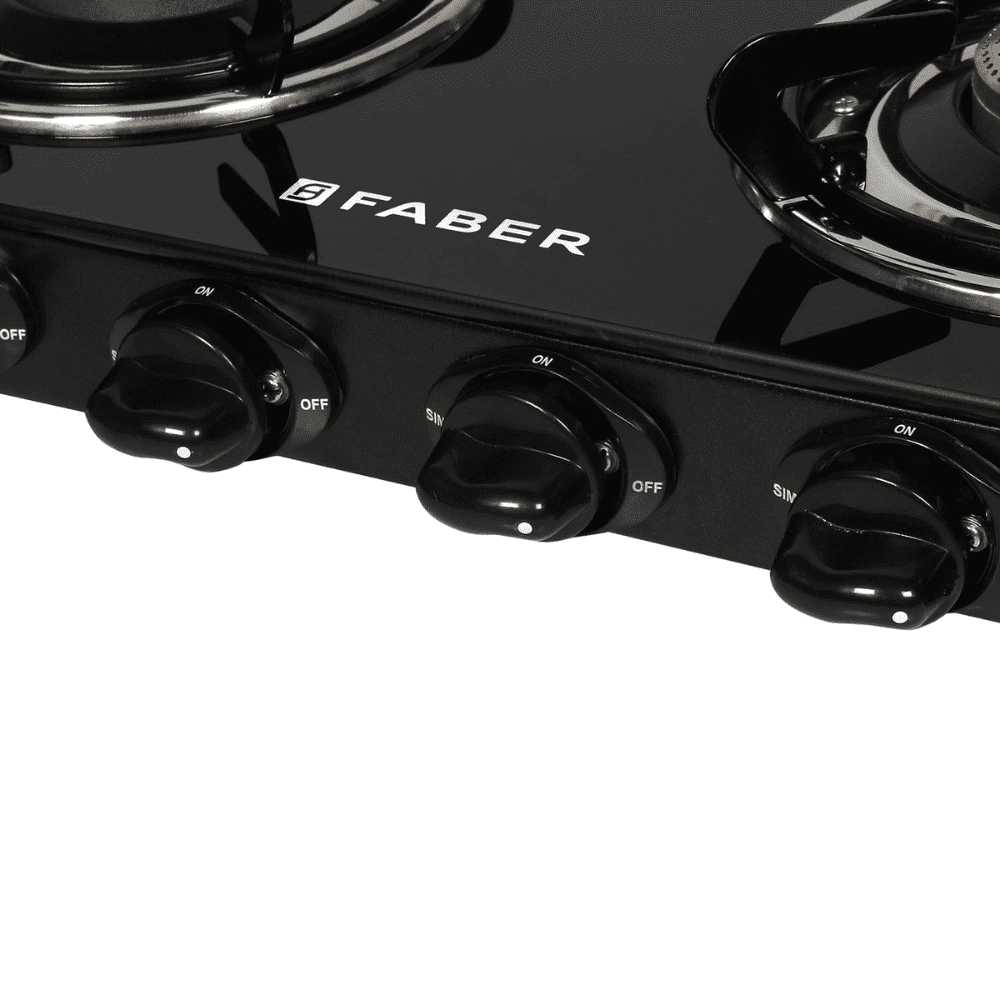 Faber Cooktop, POWER 4BB BK, 4 Burner 60 cm Manual Ignition Glass Top Brass Burners 1 Small + 2 Medium +1 Jumbo Gas Stove (Black)