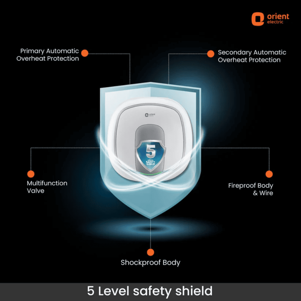 - INTUITIVE DESIGN FOR UTMOST CONVENIENCE: The orient geyser comes with an ergonomic touch control, enabling you to manually increase/ decrease the temperature and switch the geyser on/ off. They geyser also comes with a digital display.