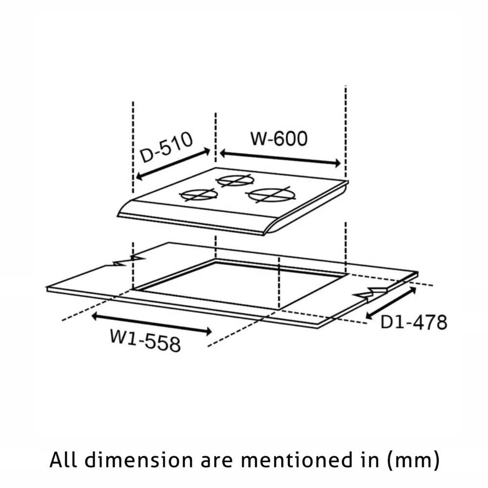 - Spacious Layout : With 600 x 510 mm Spacious layout along with three burners allows you to multitask and cook multiple dishes simultaneously, saving time and effort.