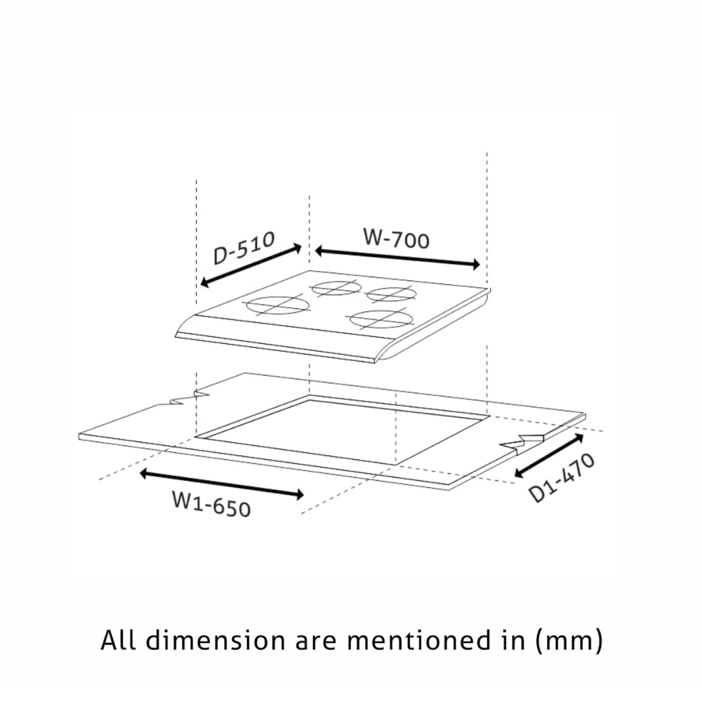 - Built in Hob equipped with 4 Different Double Ring Forged Brass Burners: 2 Big and 2 Small Burner for diverse cooking requirements. Integrated auto ignition AC 230-240 V - no need to search for lighter or matchstick.