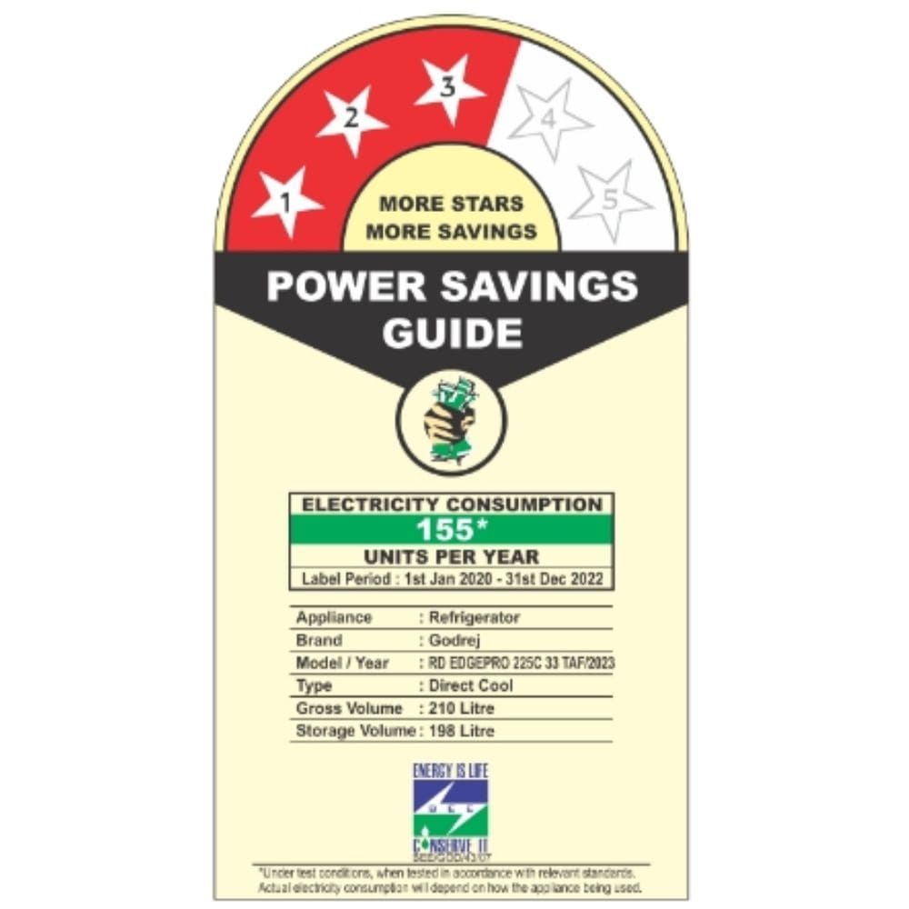 - Energy rating: 3 star, Annual energy consumption: 155 Kilowatt Hours