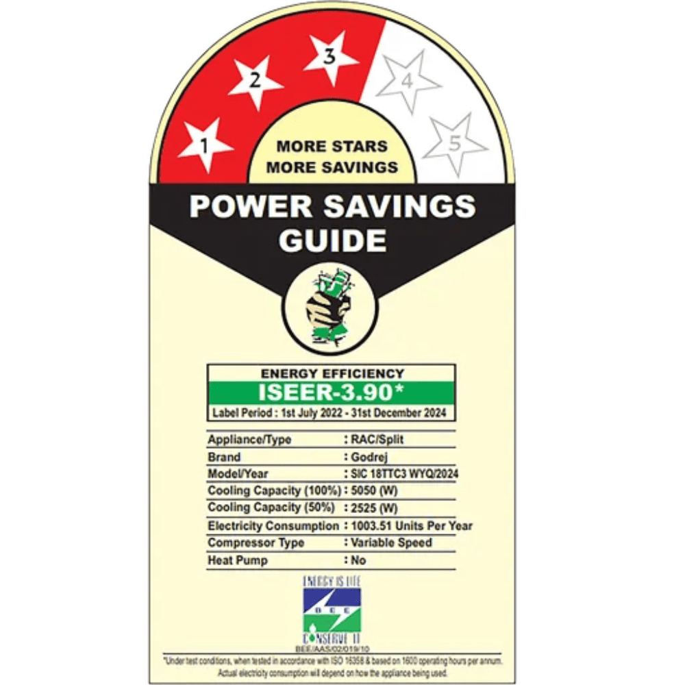 Energy rating : 3 star, Annual energy consumption: 965.71, ISEER value: 3.85 This model is as per the new star rating standards valid till 2024