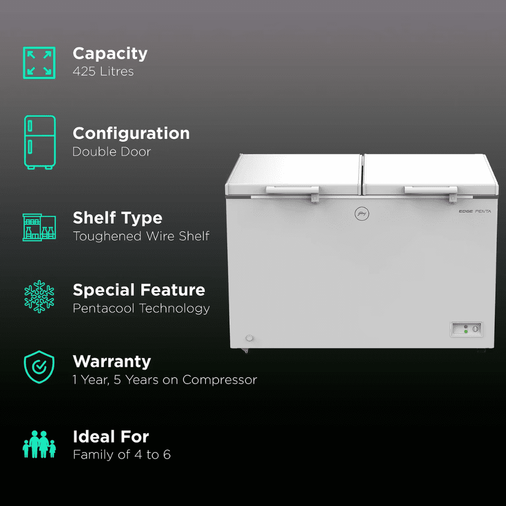 Godrej DH EPenta 31C, 425 Ltrs Double Door Convertible Deep Freezer, Royal White