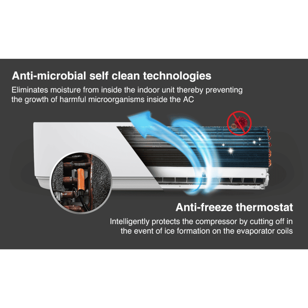 - Condenser Coil: 100% copper evaporator and condenser with Blue Fin Anti-Corrosion coating that ensures durability and heavy duty performance for uninterrupted powerful cooling
