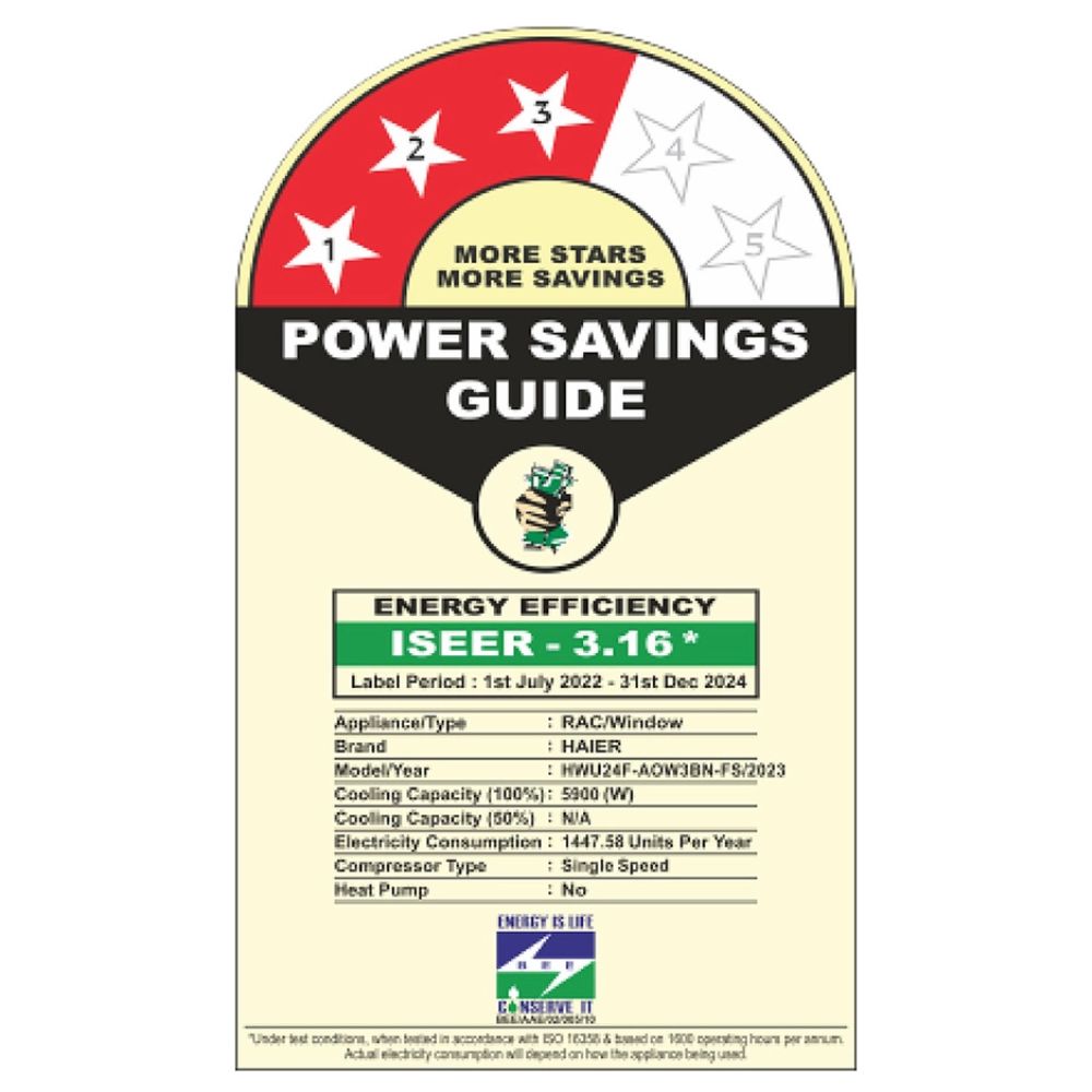 - Energy Rating: 3 Star | ISEER: 3.15 | Annual Energy Consumption: 1448 KWH | Refrigerant: R32 Refrigerant has been used which is environment friendly and has No Ozone Depletion Potential and Low Global Warming Potential