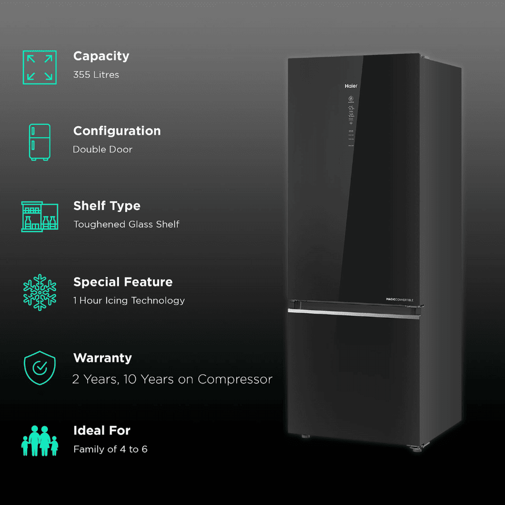 HAIER 265 Litres 2 Star Double Door Refrigerator (HRB-3152PKG-P, Black)