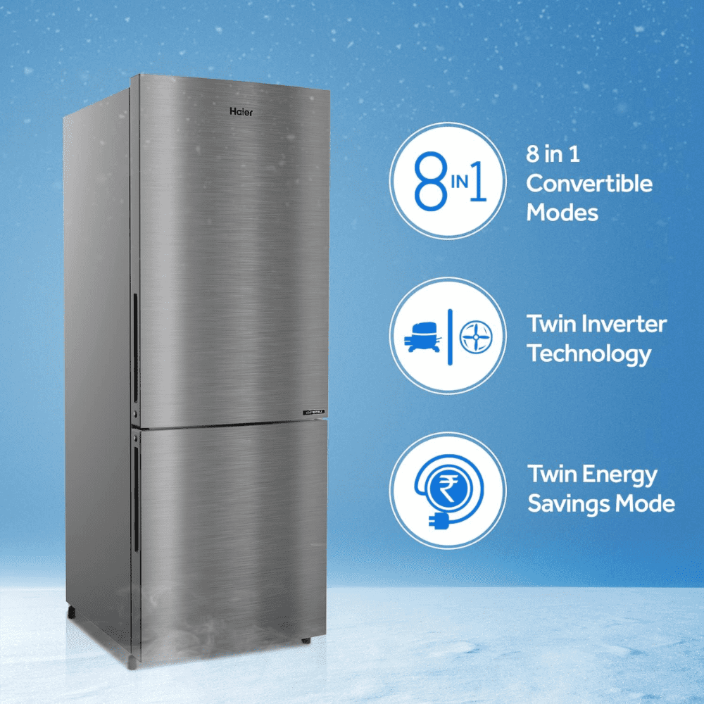 HAIER 265 ltr 2 Star Double Door Refrigerator (HRB-3152BIS-P, Silver Grey)