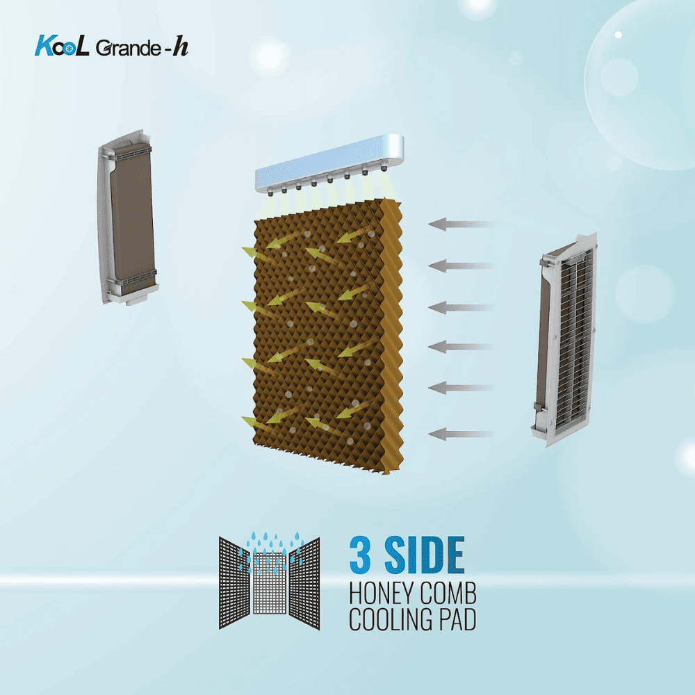 - Smell free & high density honeycomb pads with 35mm thickness which provides high water retention rate and therefore provide effective cooling