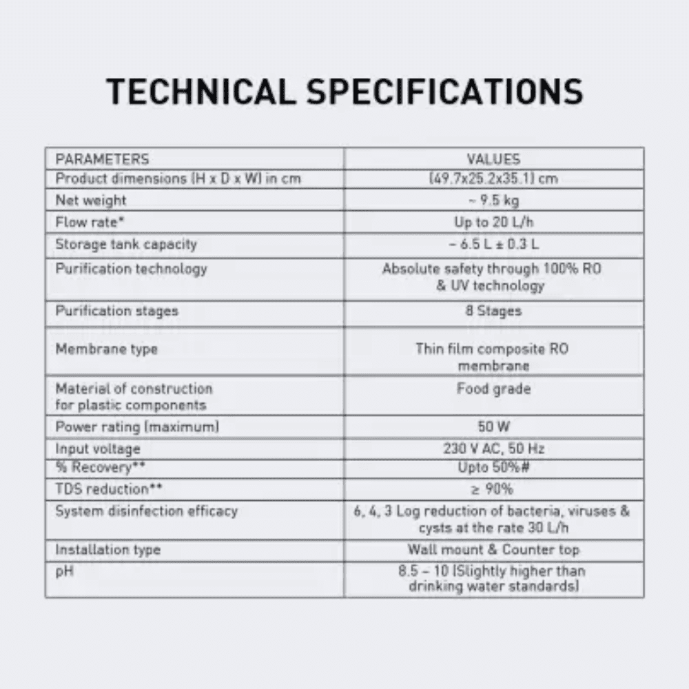- 24x7 Tank Sterlization: UV LED prevents the Bio-film formation and maintains hygiene of water and stainless steel tank;High Recovery: Recovers over 50% water and Delivers high flow : Saves water and Time