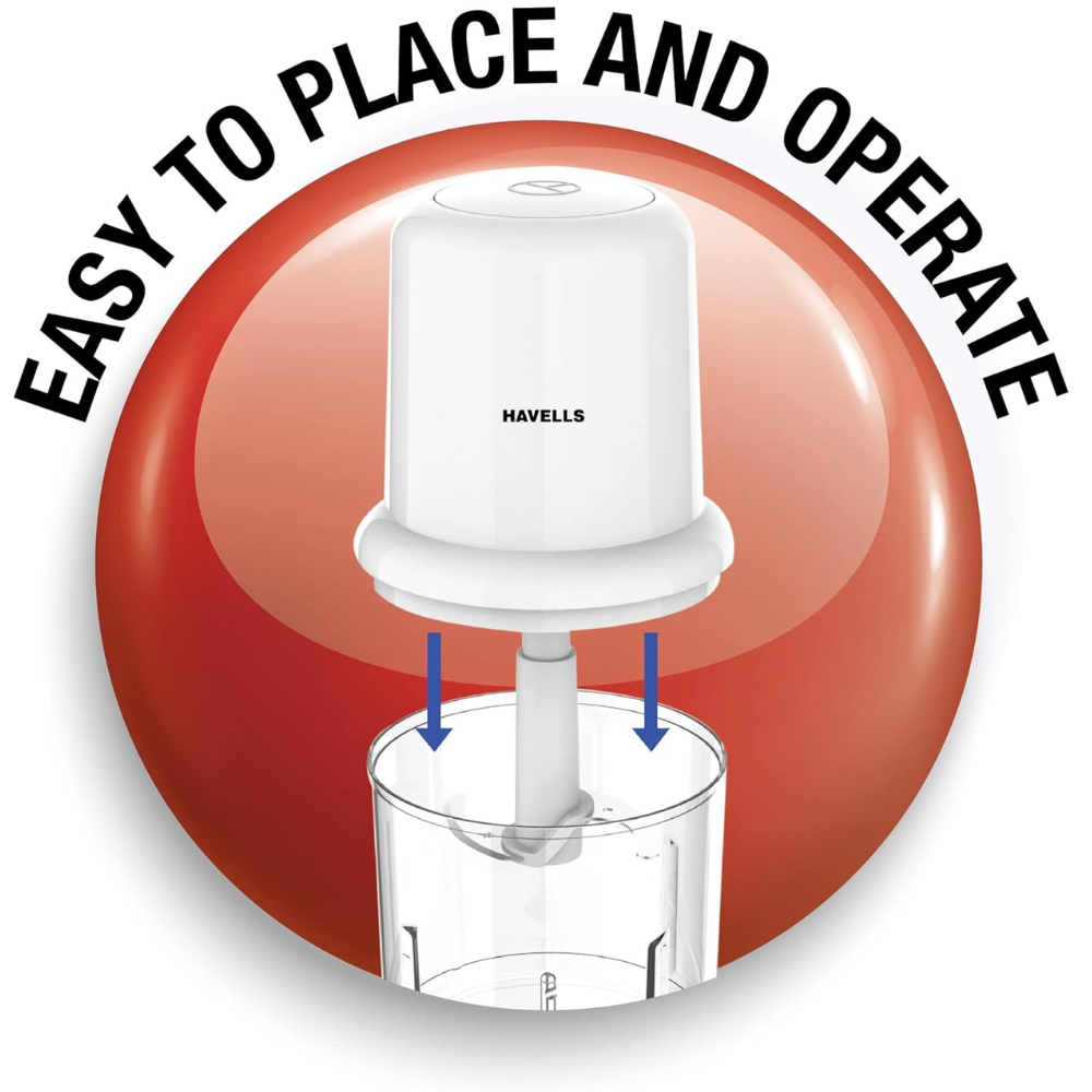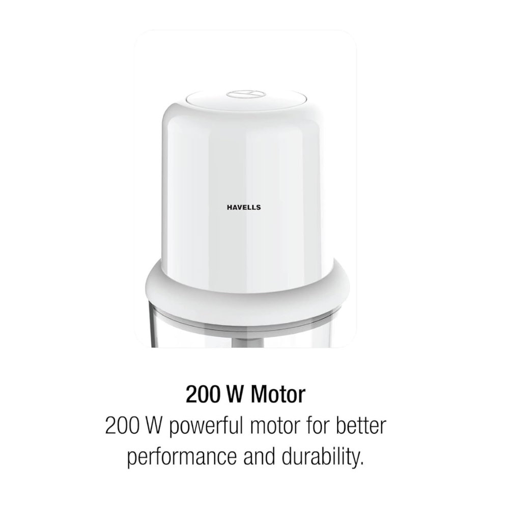 Havells Coral, 200 Watts Stainless Steel Blade Electric Chopper with 750ML Choping Bowl (White)