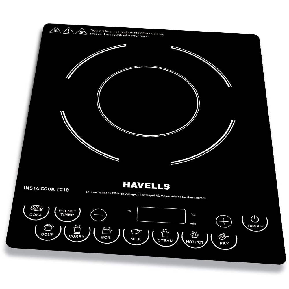 - You can enjoy hassle-free cooking with the Havells Insta Cook TC18 Cooktop. It has a full-touch display that lets you access the features easily.
