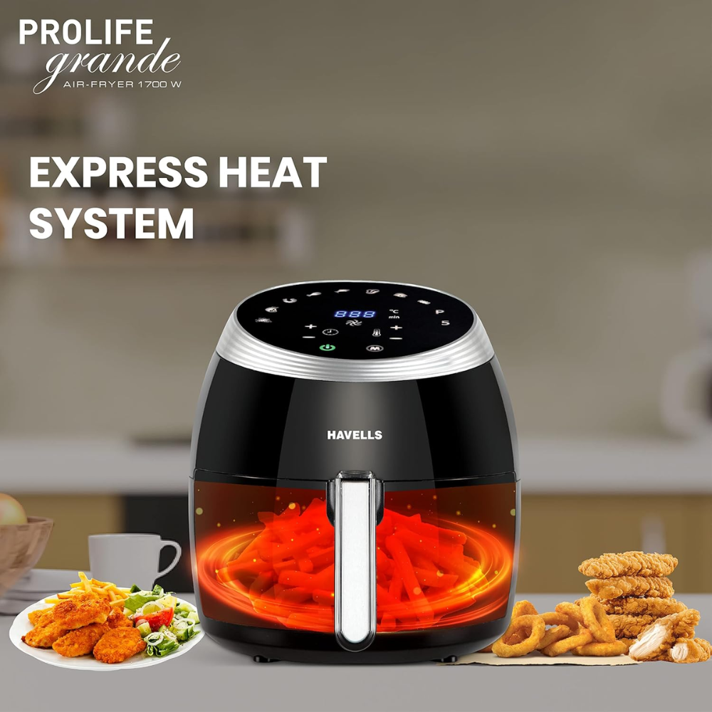 Havells Grande, 1700 Watts 6.5 Litres Digital Touch Air Fryer with Aero Crisp Technology (Black)