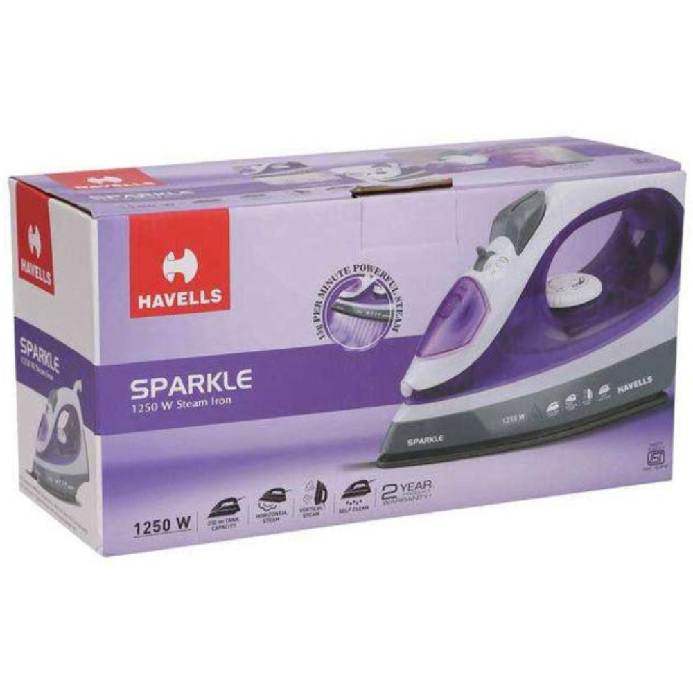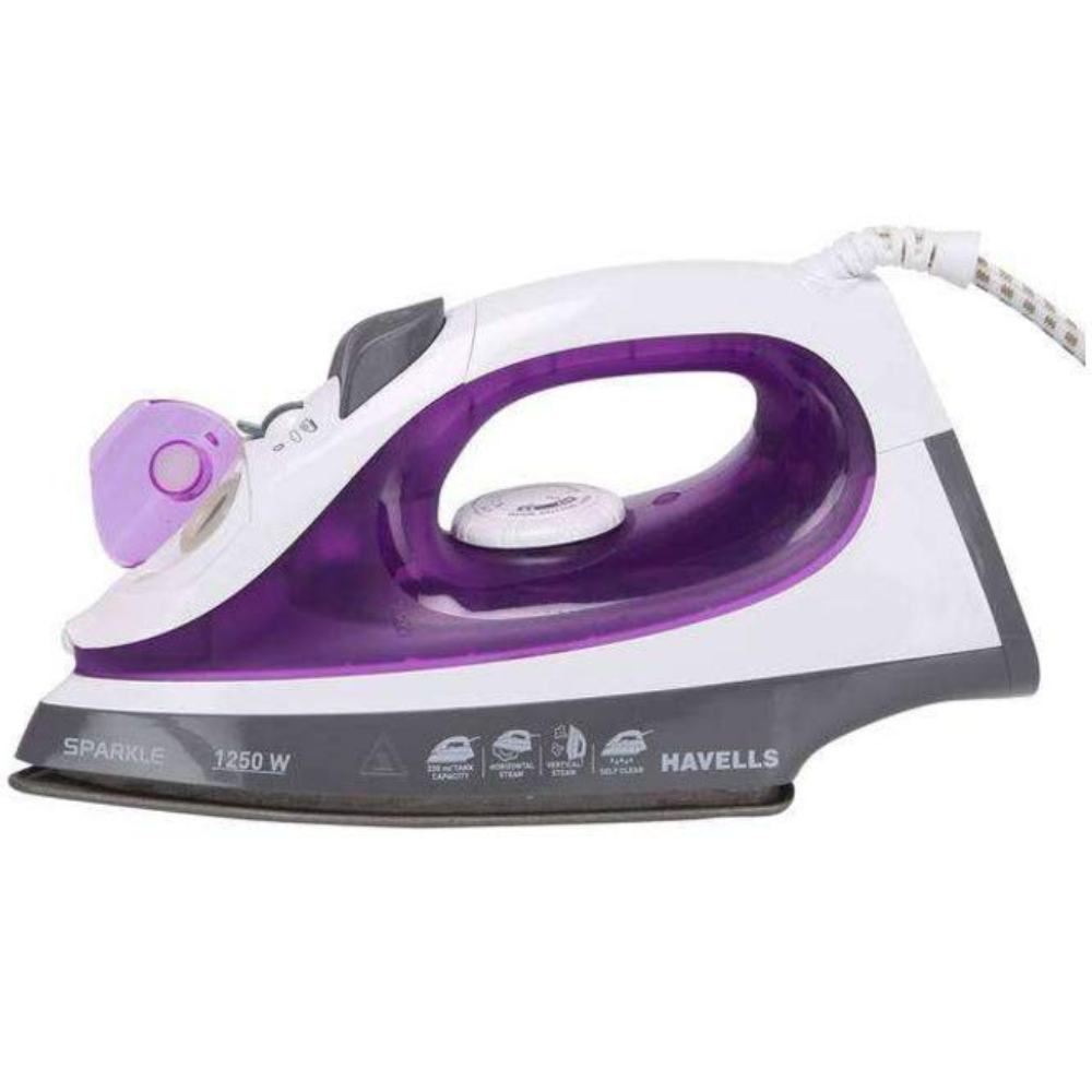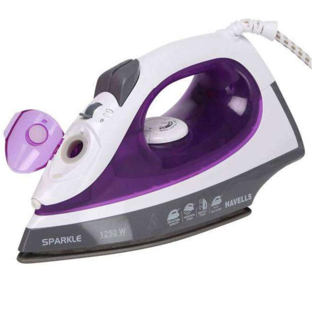 Havells Plastic Sparkle, 1250 Watts Steam Iron with Power full Steam Spay (White & Purple)