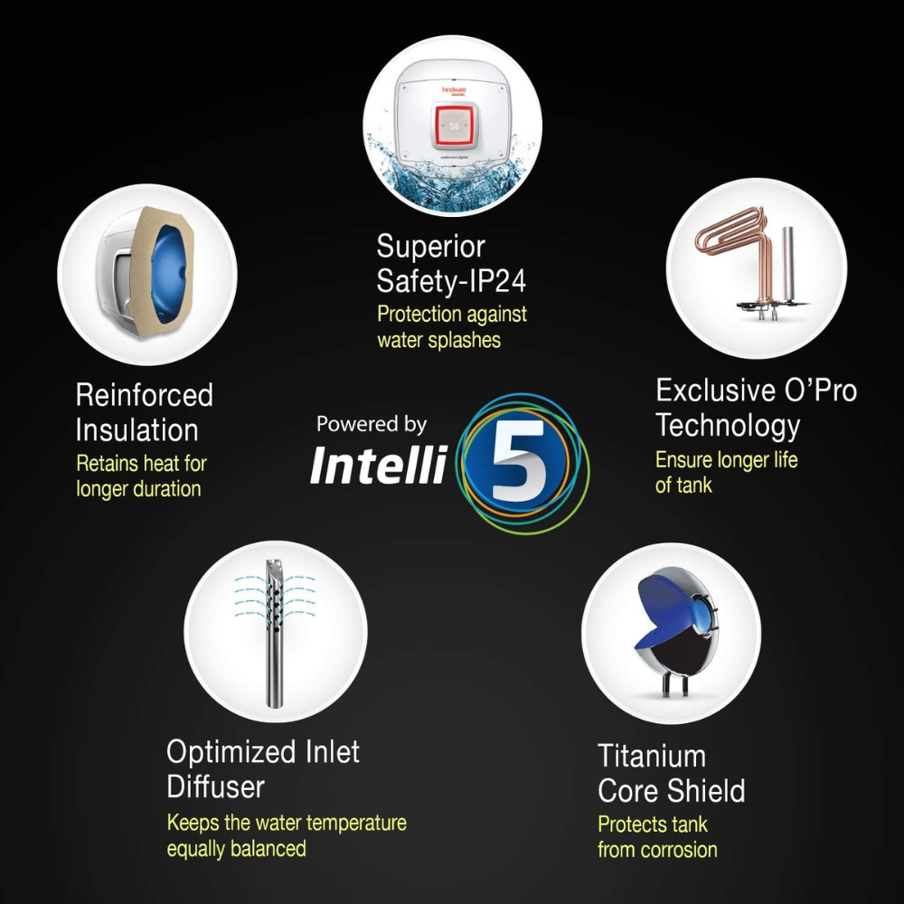 - Inner Tank Material: Titanium Core Shield, baked to perfection at 850°C to provide superior protection against corrosion. With reinforced insulation, you will get hot water as injection of liquid foam ensures superior insulation and retains heat for long duration