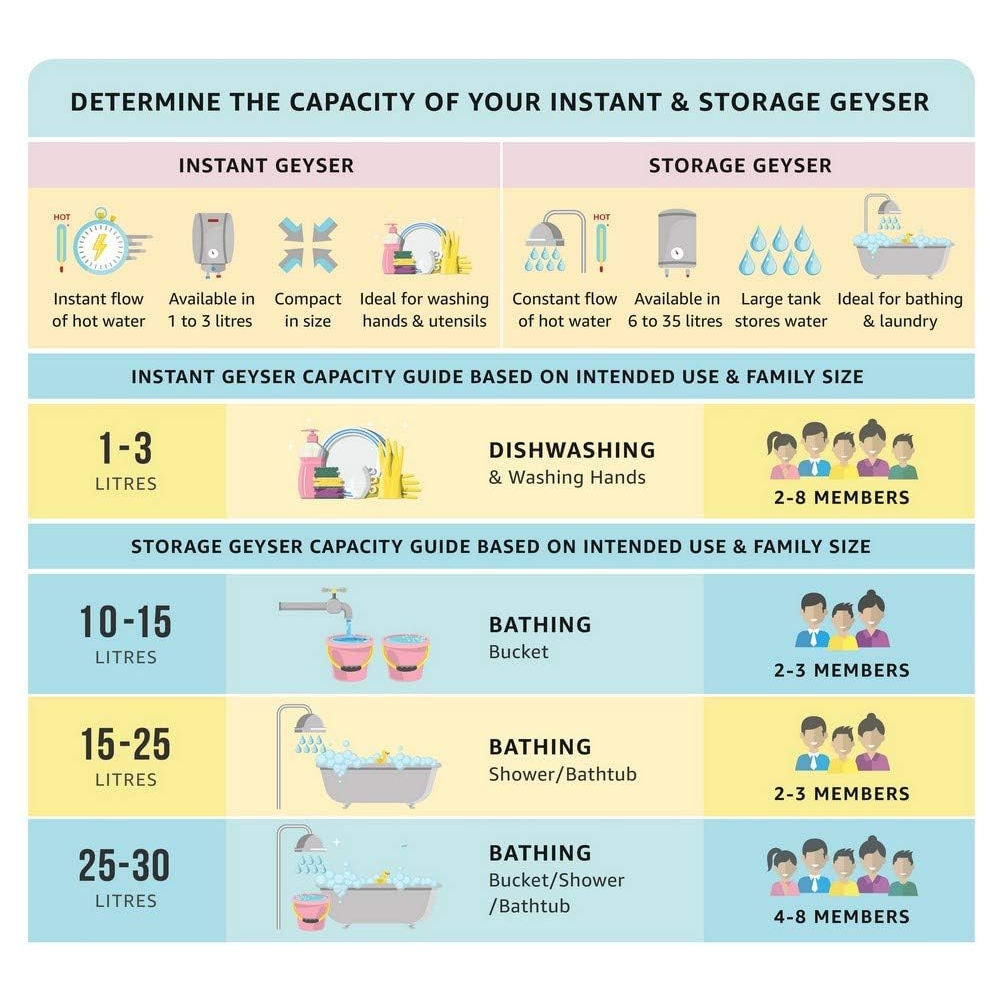 - Type: Storage Water Heater; Capacity: 25 Litres; Wattage: 2kW; Pressure: 8 Bars; BEE Rating: 5 Star