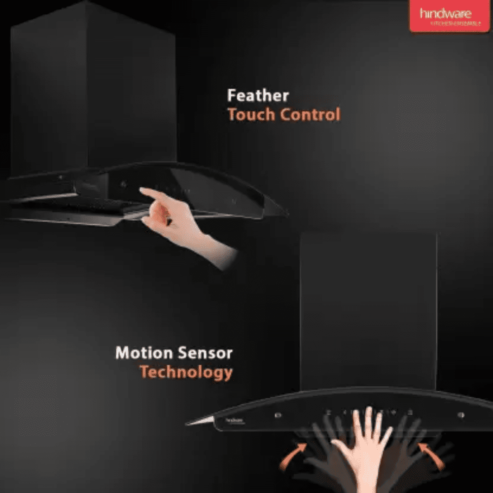 Hindware ALDINA, 90 Cm 1200 m3/hr Auto Clean Wall Mounted Chimney, Hoods Series with Filterless Technology (Black)