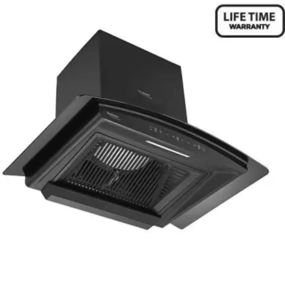 Hindware ZINNIA BLK, 75 cm 1300 m3/hr Auto Clean Wall Mounted Chimney with Filterless Technology (Black)