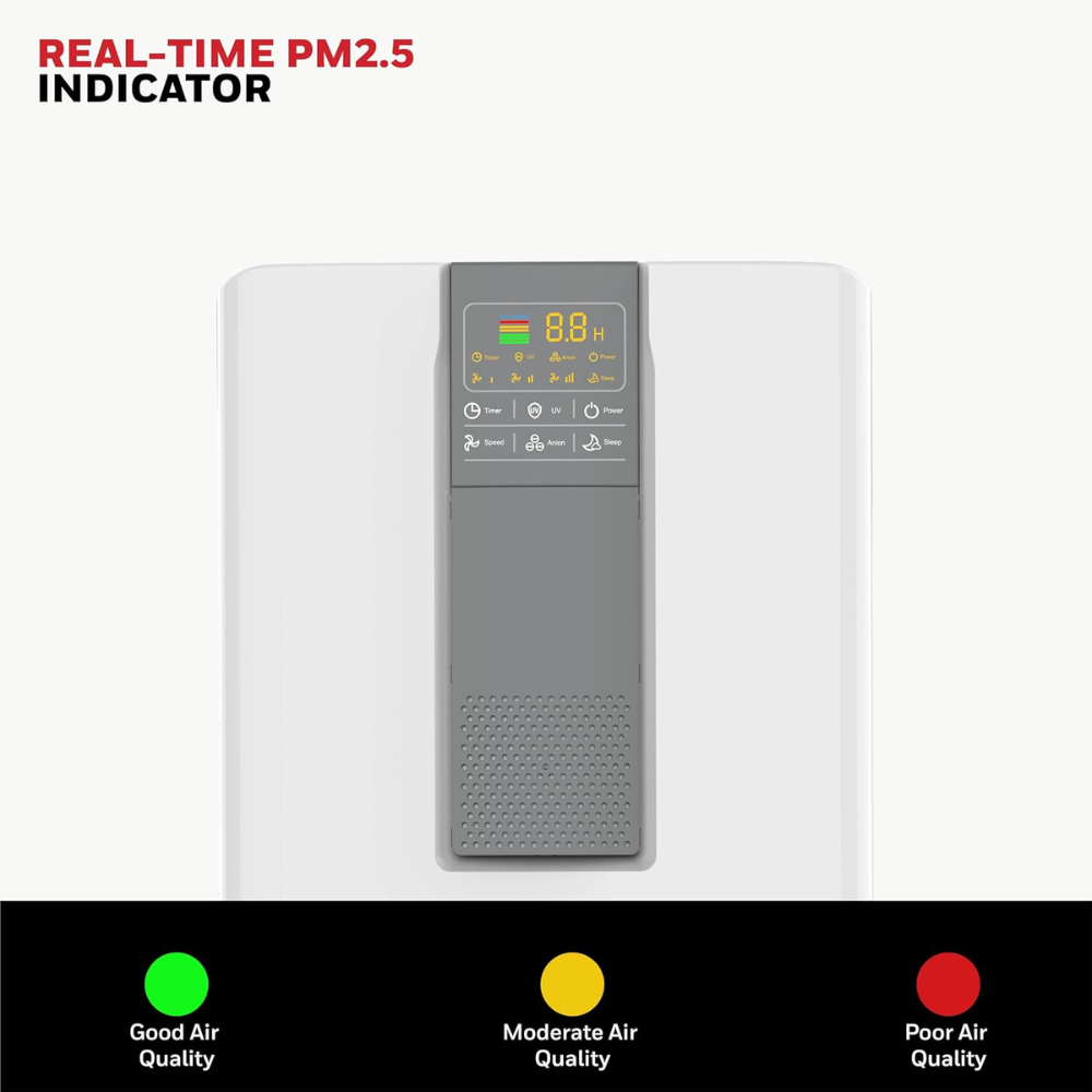 - Comes with a Real Time PM2.5 level indicator and Sleep mode with 1,2,4 or 8 hour automatic shut-off timer