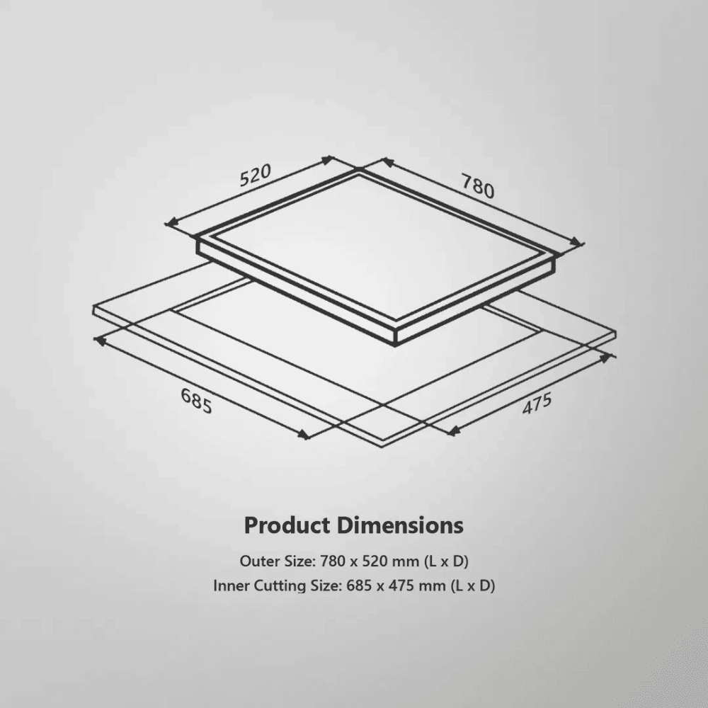 Product Dimension: Inner Cutting Size: 685 x 475 mm (L x W), Outer Size: 780 x 520 x 130 mm (L x W x H)