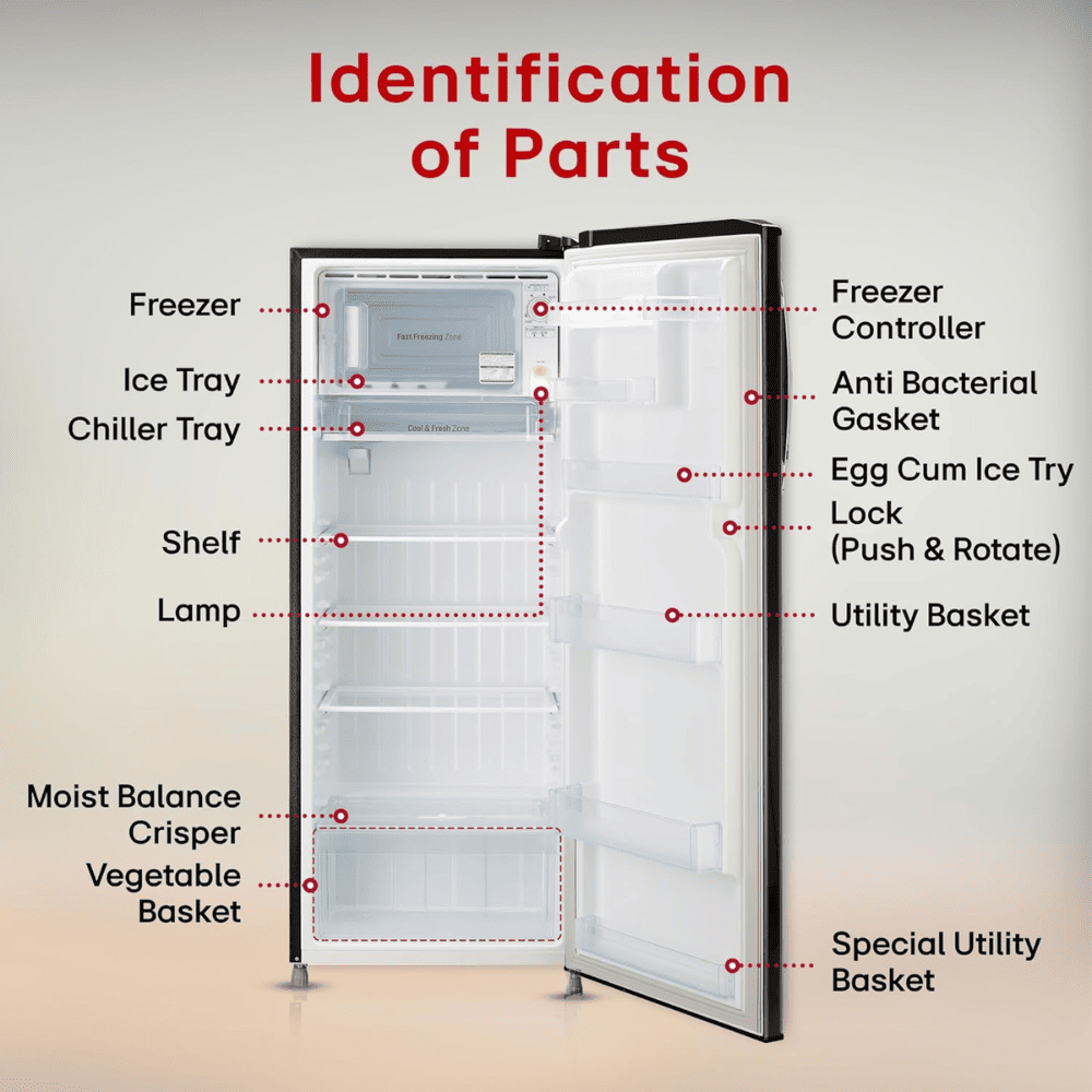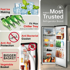 5. Cooling and freshness technology : LG Single Door Refrigerator ensure long lasting freshness with its Smart Inverter Compressor, delivering efficient cooling while saving energy. Moist ‘N’ Fresh technology maintain the perfect moisture balance to keep fruits and vegetables fresh for longer.With fast ice making- you can always have enough ice on hand for guests, this refrigerator provides uninterrupted cooling and freshness, no matter the condition