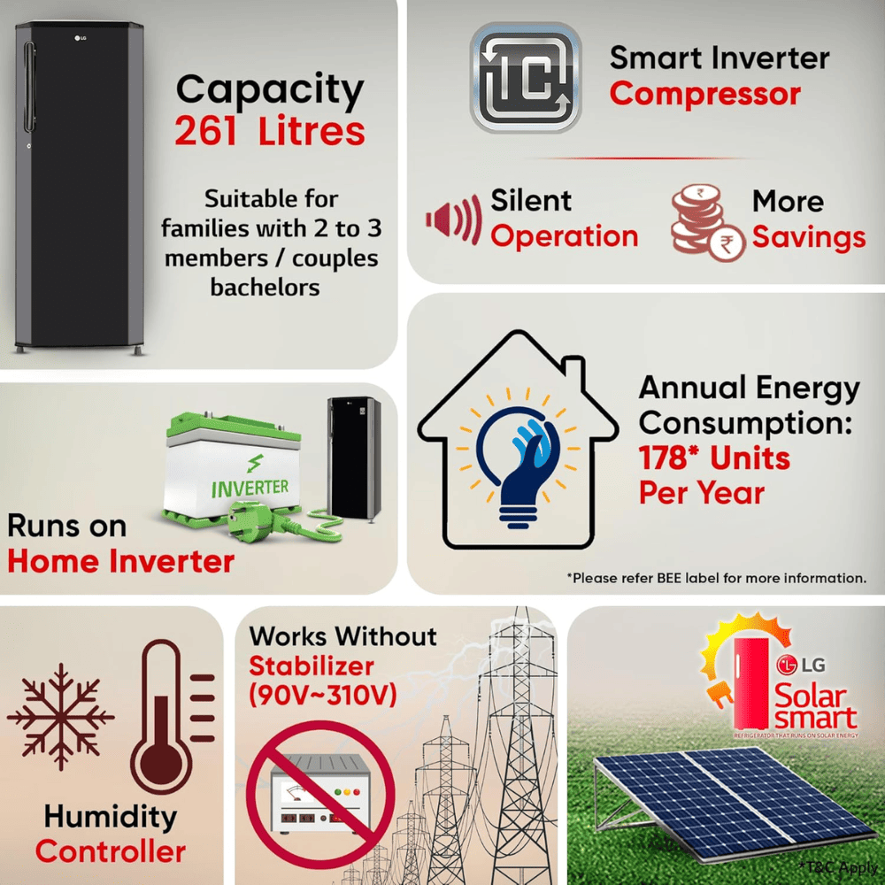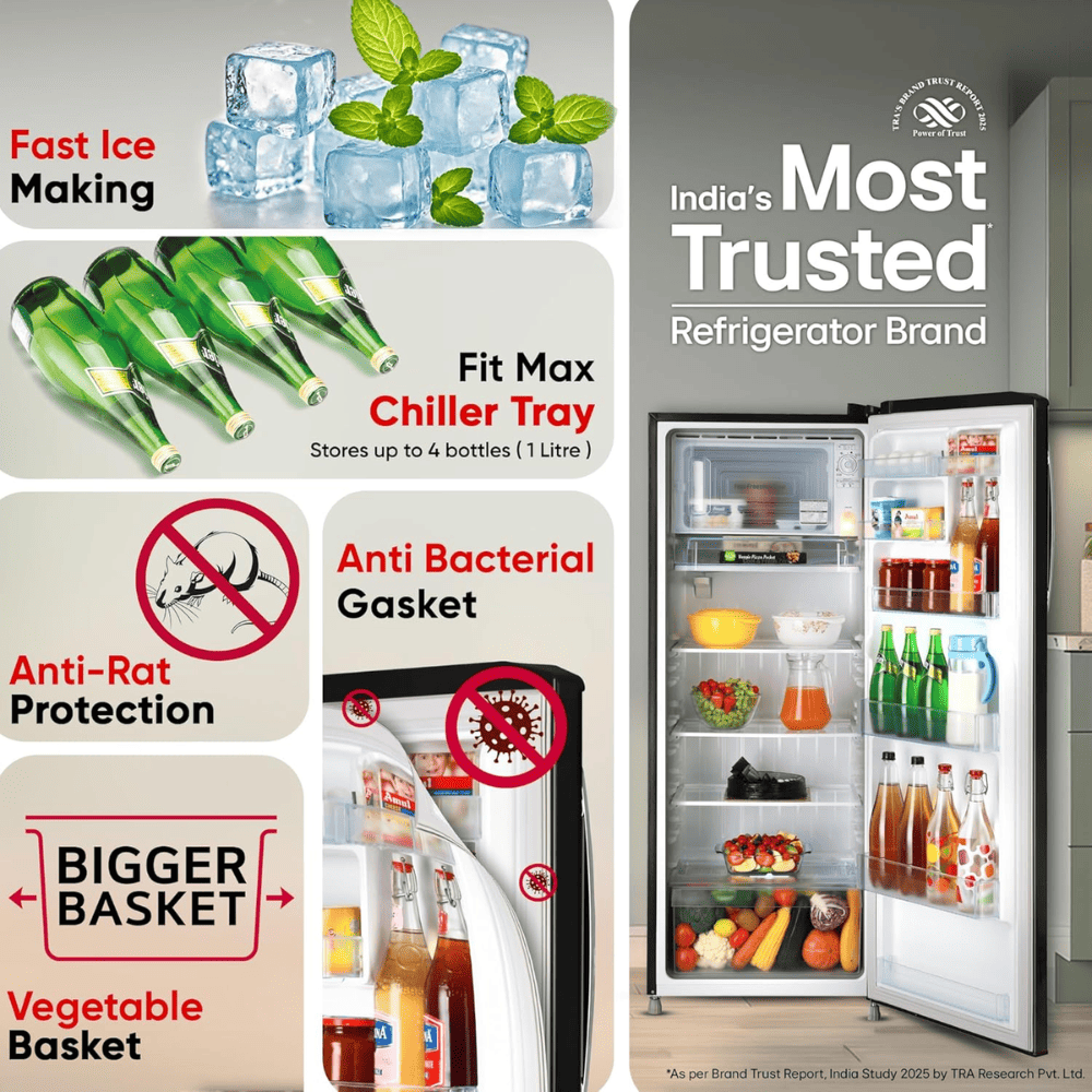 1. Experience powerful cooling and stylish design with LG’s Single Door Direct Cool Refrigerator : built for energy efficiency, long-lasting freshness, and everyday convenience