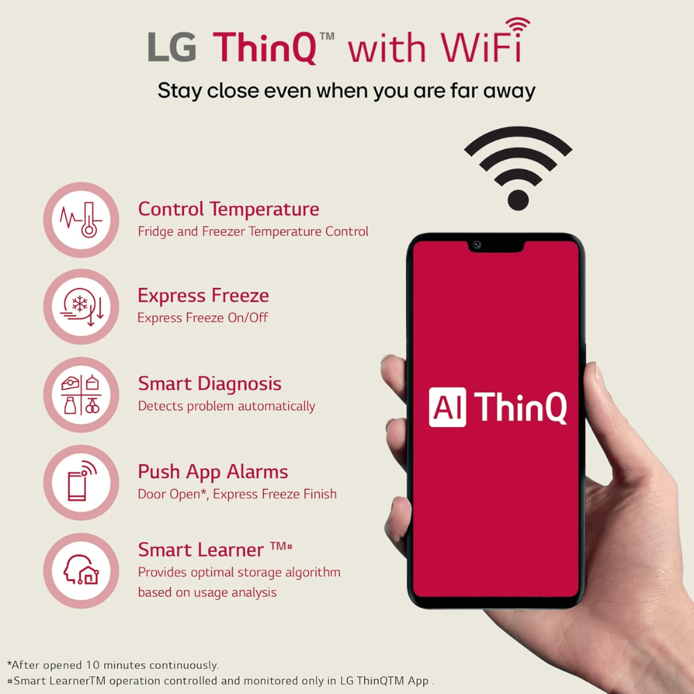 - Key Features : Wi-Fi Convertible – Convert freezer to fridge from anywhere; AI ThinQ Optimizes cooling as per usage; Door Cooling+ - More even & faster cooling; Hygiene Fresh+ - up to 99%