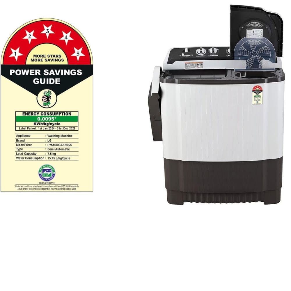 LG 7.5 Kg 5 Star Semi-Automatic Top Load Washing machine (P7510RGAZ, Black)