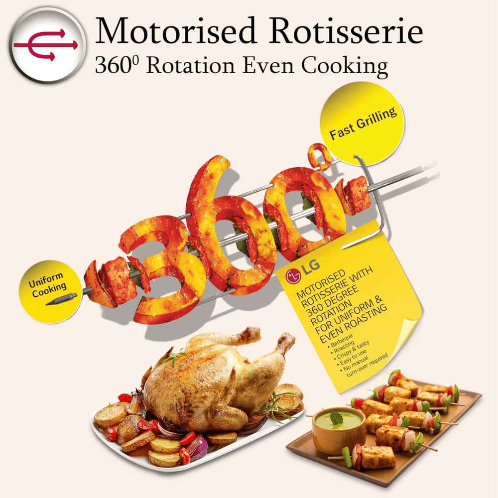 - Convection : Can be used for baking along with grilling, reheating, defrosting and cooking