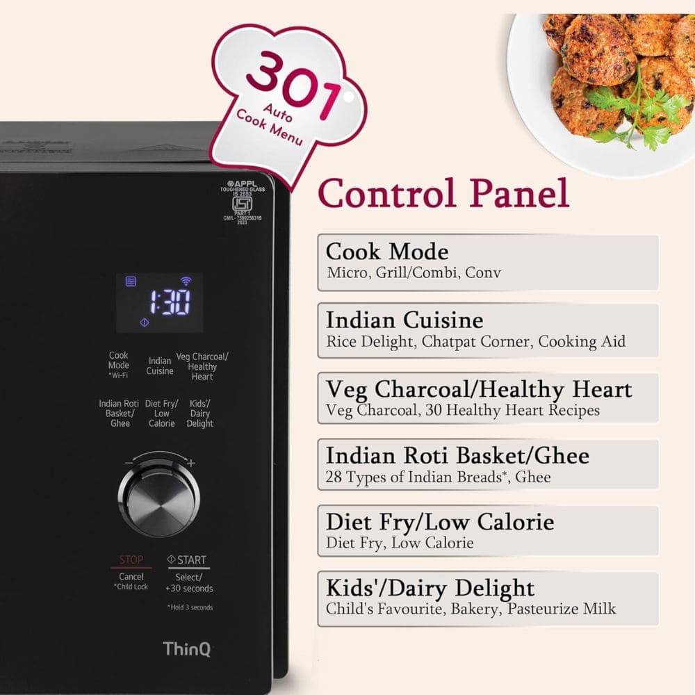 Auto Cook, Child Lock, Grill Function, Timer, Wifi Connectivity