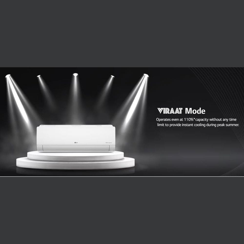 - Key Features: Dual Inverter Compressor – faster cooling, most savings and almost noiseless operation | AI Convertible 6-in-1 Cooling – one touch air conditioning for appropriate cooling and sensing room conditions | VIRAAT Mode - Maintains 110%* cooling capacity, that provides instant cooling for maximum user comfort (*Maximum Cooling Capacity may vary Model to Model from 110% to 116%)| 4 Way Air Swing | HD Filter with Anti-Virus Protection | ADC Sensor | Cools at 52⁰ C - Fastest cooling for higher outdoor temperatures up to 52° C | Stabilizer free operation within 120V-290V voltage range | Magic Display for temperature | Noise Level: IDU - 21 (db) & ODU – 55 (db)