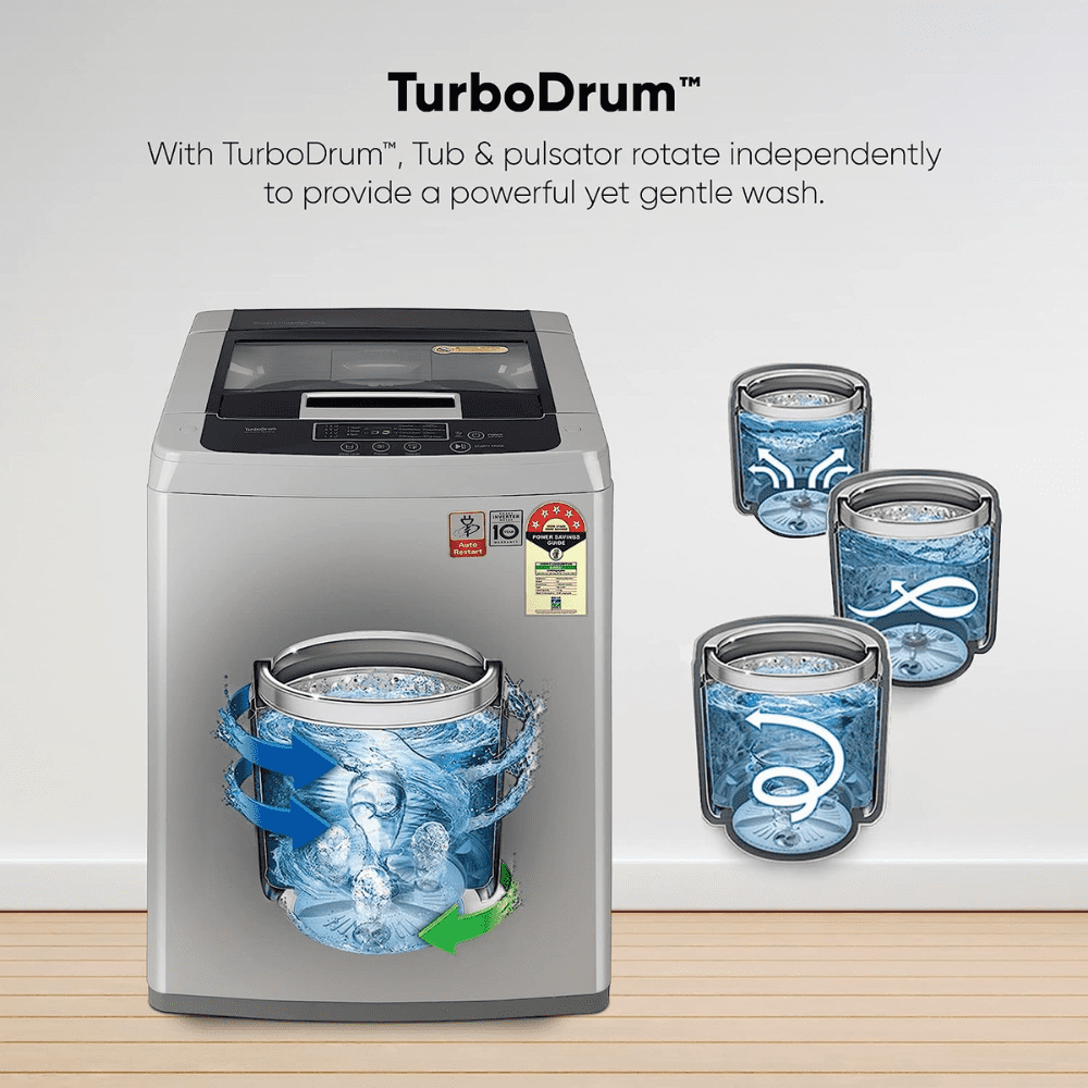 - The LG 7.5Kg Top-Loading Inverter Fully Automatic Washing Machine is a perfect fit for families of 6-8 members, offering a convenient and efficient solution to all your laundry needs. Featuring 8 wash programs and a 5-star energy efficiency rating, this washing machine ensures an eco-friendly and cost-effective approach to keeping your clothes clean.