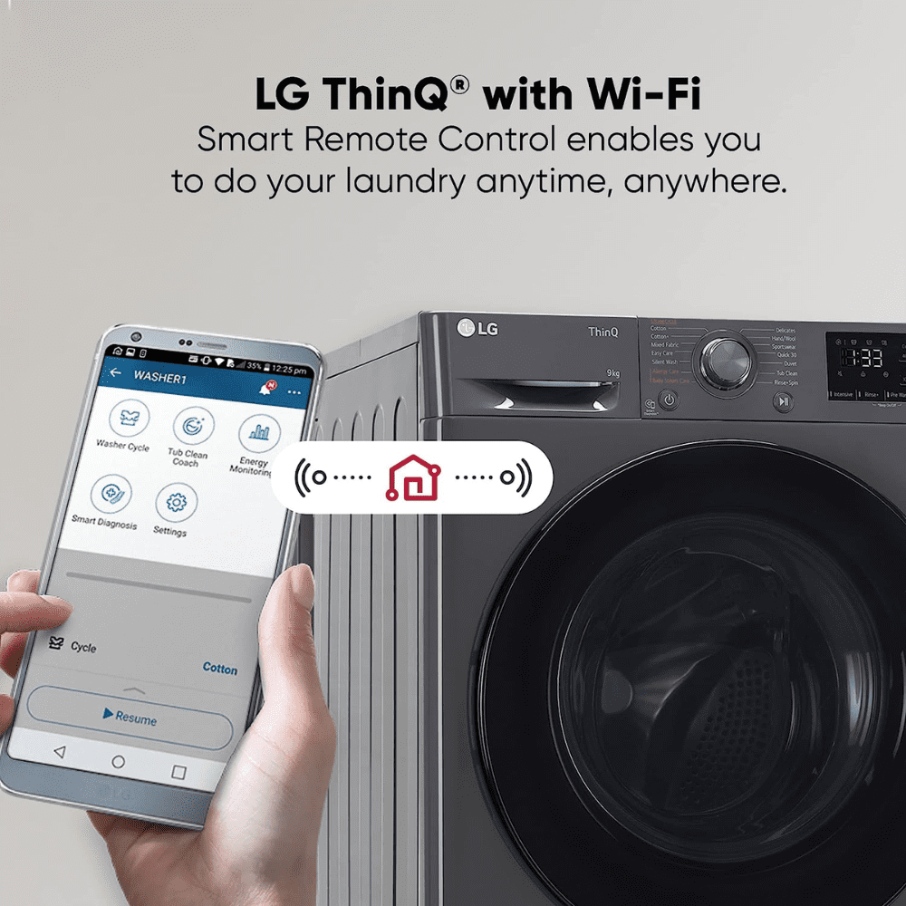 LG 9 Kg 5 Star Inverter Wi-Fi Fully-Automatic Front Load Washing Machine (FHV1409Z4M, Middle Black)