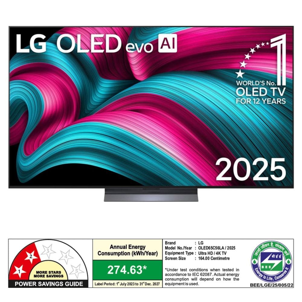 LG OLED65C56LA, 65 Inches, 4K Ultra HD OLED TV, Black