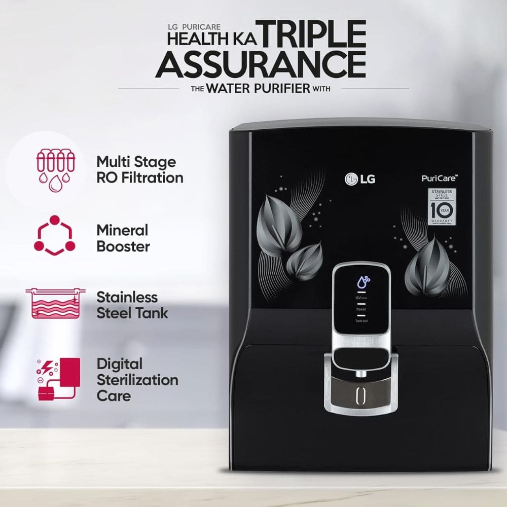 LG WW174NPB, 8 Litres RO+UV Mineral Booster Stainless Steel Tank Wall Mountable Water Purifier, Black