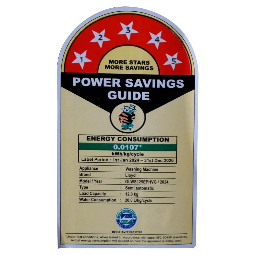 Lloyd 12 Kg 5 Star Semi-Automatic Top Load Washing machine (GLWS125EPHVG, Grey)