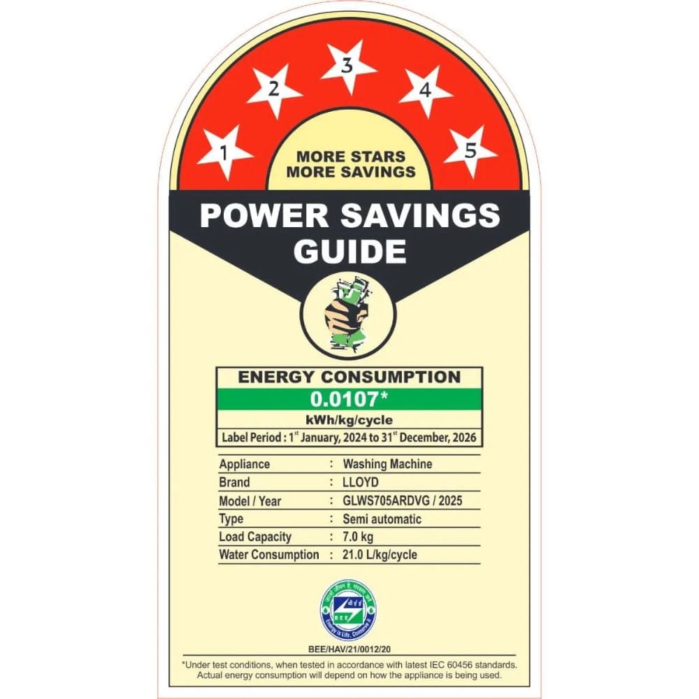 Lloyd 8.5 Kg 5 Star Semi-Automatic Top Load Washing machine (GLWS705ARDVG,Grey)