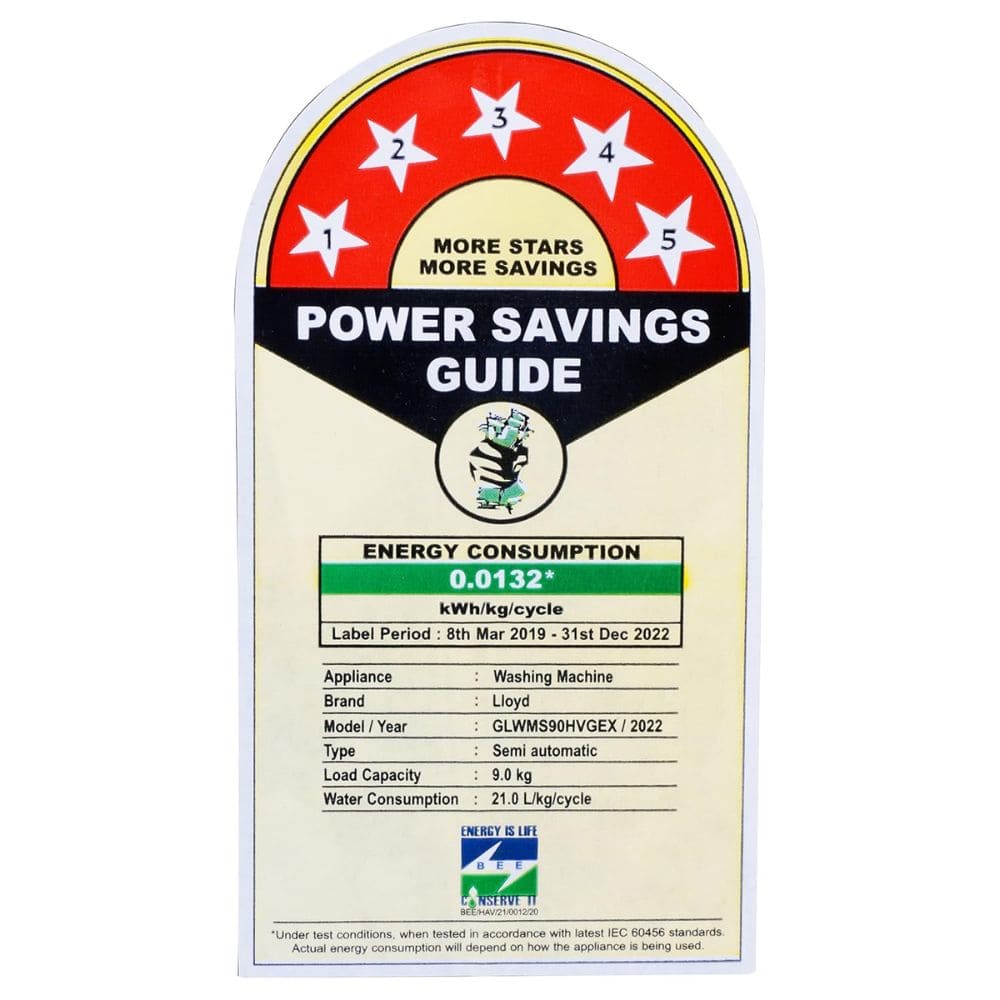 Lloyd 9 Kg 5 Star Semi-Automatic Top Load Washing machine (GLWMS90HVGEX, Grey)